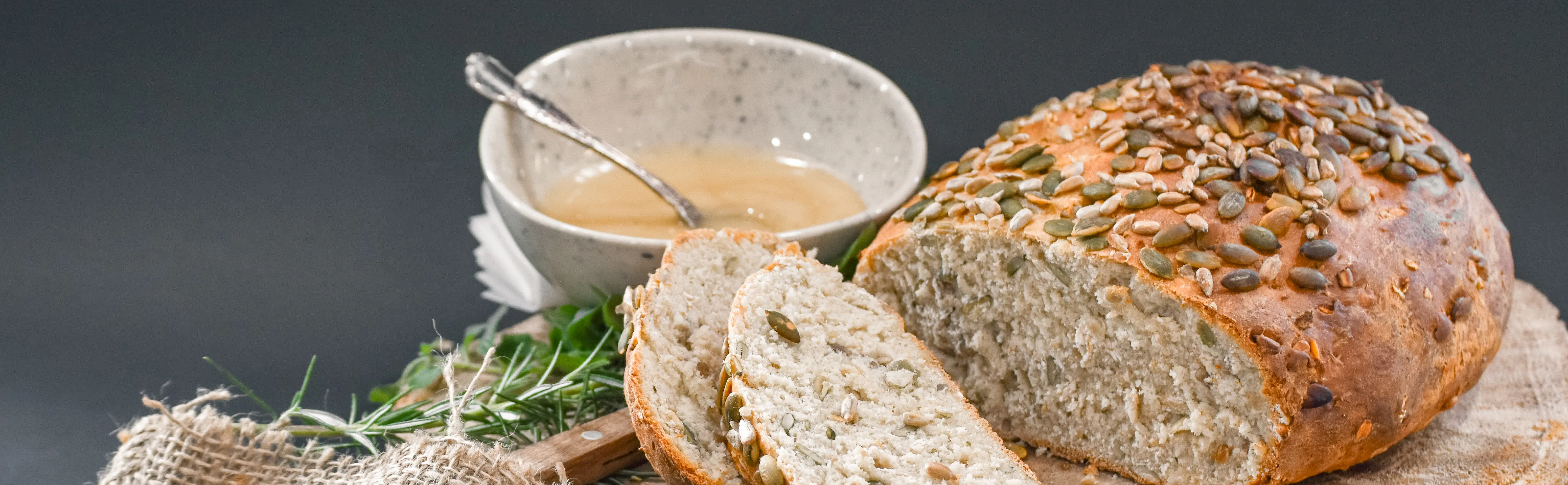 Nothing beats fresh home-made bread! It’s true comfort food. This grainy loaf flavoured with a hint of Beech Forest Honey is great with soups and sandwiches but best smothered in real butter and more honey!